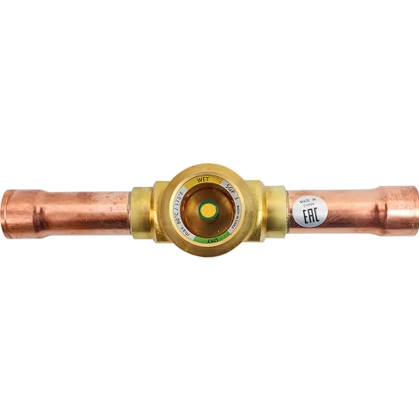 Visor de líquido fabricado pela Danfoss, com conexão roscada de 5/8" (RAC VL), ideal para monitoramento visual de fluxo de refrigerante e umidade em sistemas de refrigeração e ar-condicionado. Com corpo em latão resistente e indicador claro para medir umidade com precisão — compatível com refrigerantes CFC, HCFC e HFC